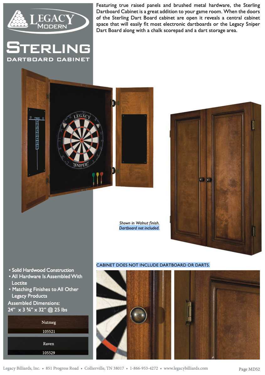 Komplettera ditt spelrum med sterling-dartskåp. Borstad metall och rymmer de flesta elektroniska darttavlorna.
