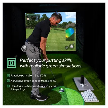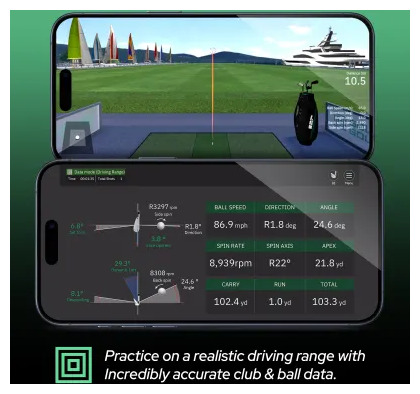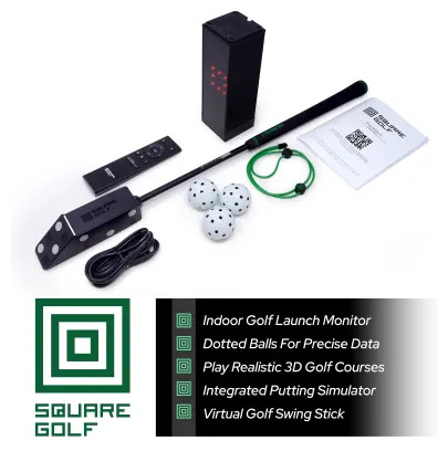Square Golfs startmonitor erbjuder en toppmodern virtuell golfträningsupplevelse med noggrann slaganalys och verklighetstrogna 3D-banor. Med hjälp av en höghastighetskamera och maskinseendeteknik ger den exakt feedback på din klubba och golfboll.