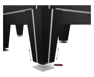 Det patenterade LevelBox Plus™-systemet möjliggör mikrojustering av brädan på upp till 30 platser, vilket möjliggör mycket exakt installation utan behov av kilar eller att bordet tas ur bruk.