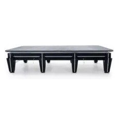 Bordsfötterna i aluminium gör det enkelt att nivellera bordet och kompletterar de färdiga sidorna perfekt.