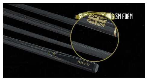 Förstärkt med 3K kolfiber och kompositmaterial. Ultra slät högblank flerskiktad färg och lackfinish. 3K kolfiber av flyg- och rymdkvalitet har högre töjning vilket ger styrka och styvhet. Stötdämpande 3M-skum i kolv för minskad vibration och känsla. Super Straight Pro Taper, matt EasyGlide-skaftfinish. Supergreppigt mjukt texturerat lädergrepp. Högkvalitativt naturläder i ett lager för kontroll, känsla och spinn. Rostfri stålhylsa. Rostfri stålkoppling med snabbkoppling för utmärkt kraftöverföring och känsla. Skyddande och ergonomiskt utformad gummibuffert förhindrar skador. Kolvkåpa i rostfritt stål. Diskreta PowerGlide-logotyper.